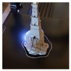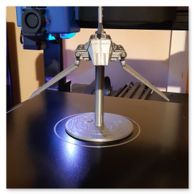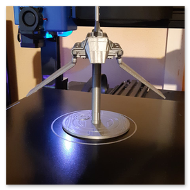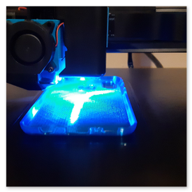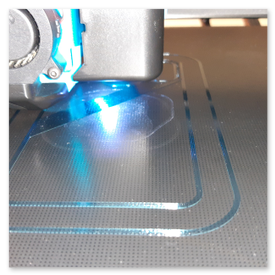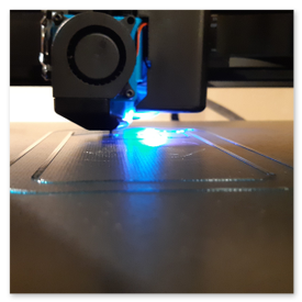 qui fait fondre le matériau et le dépose en couches 2D sur la plateforme de construction.