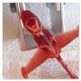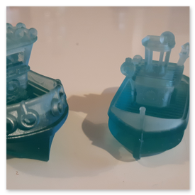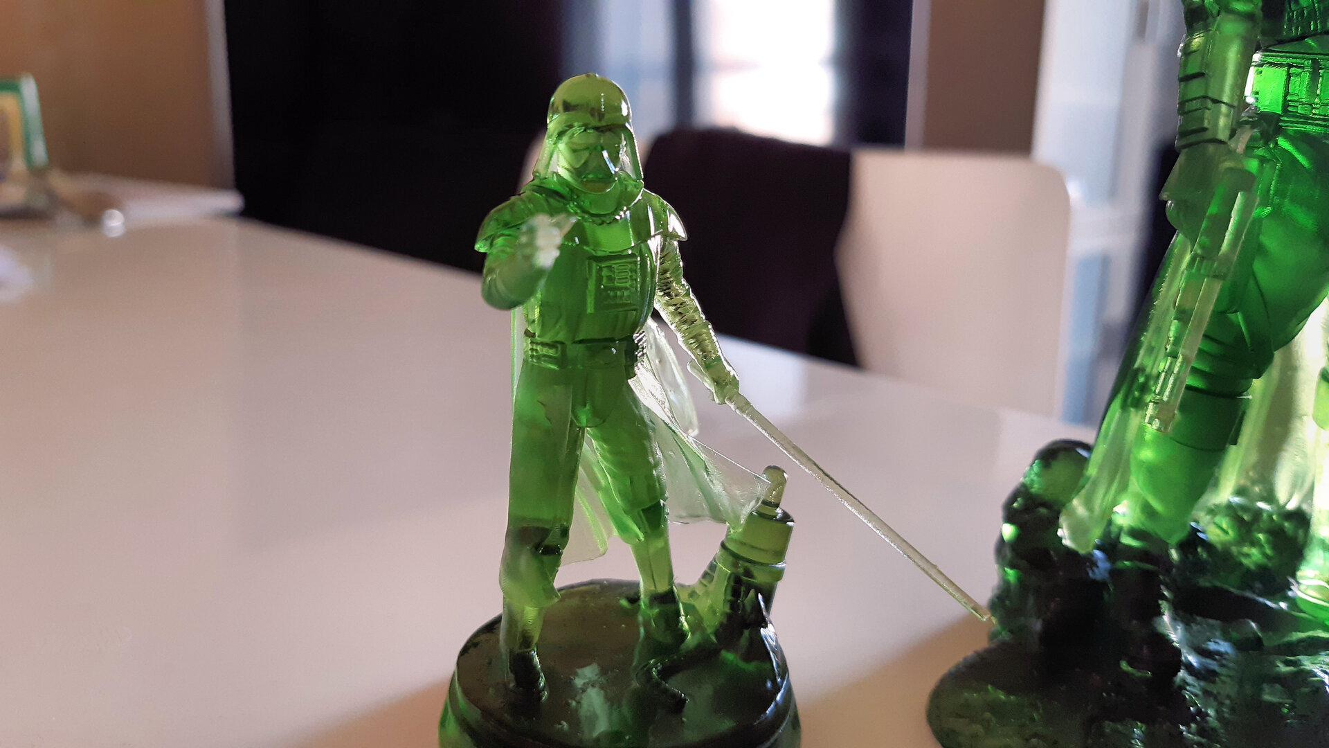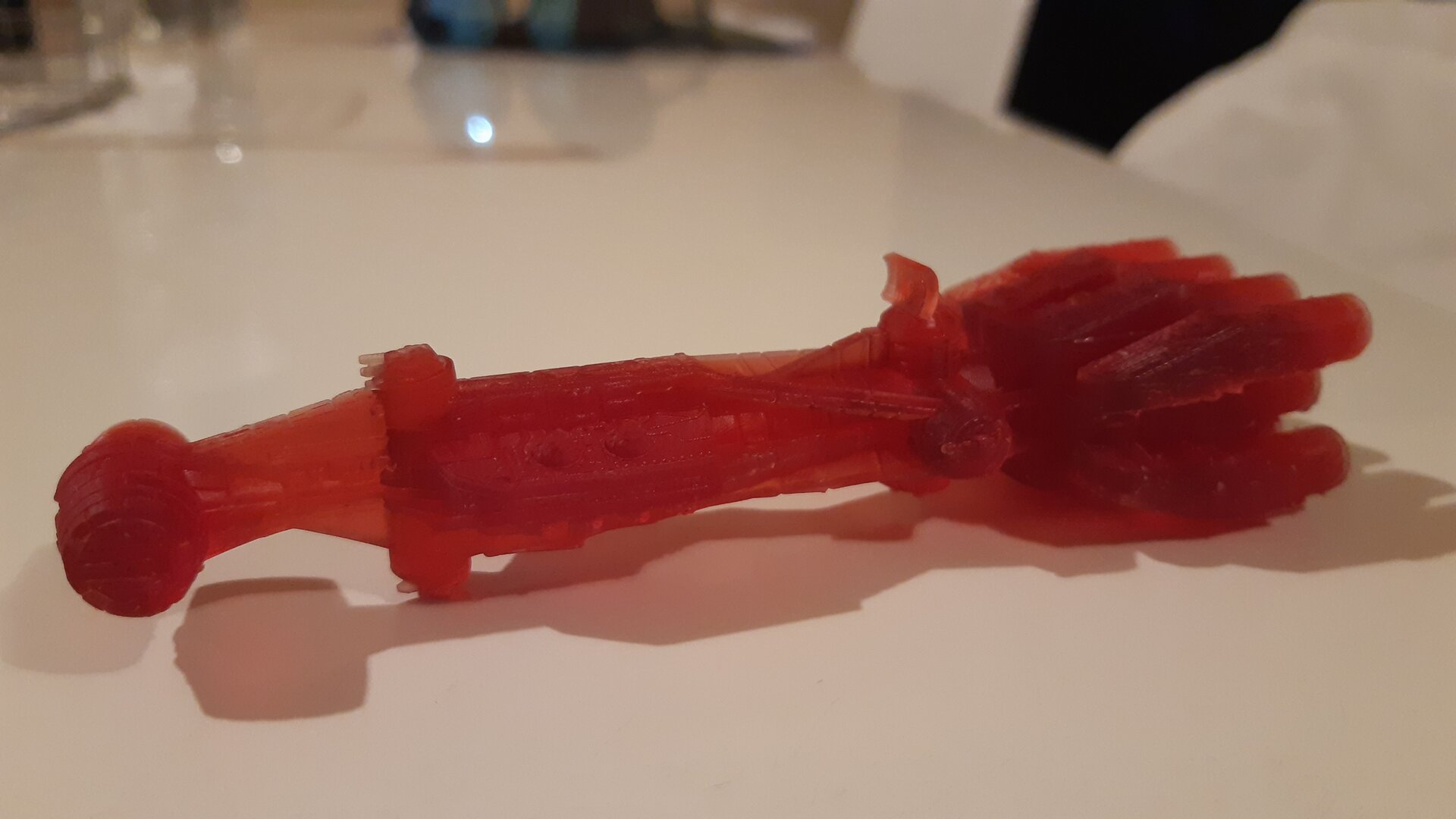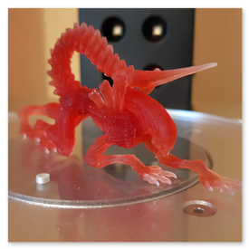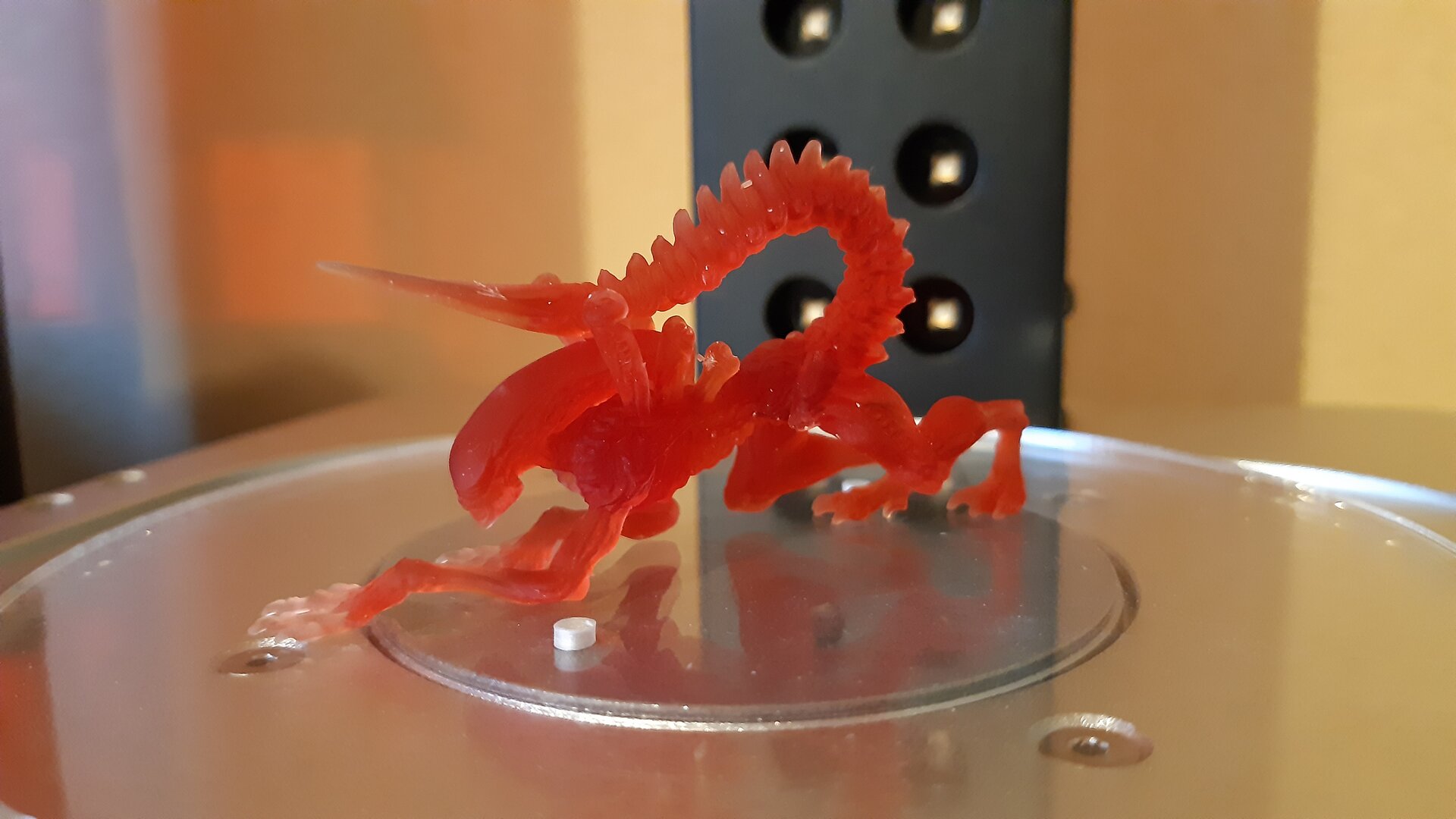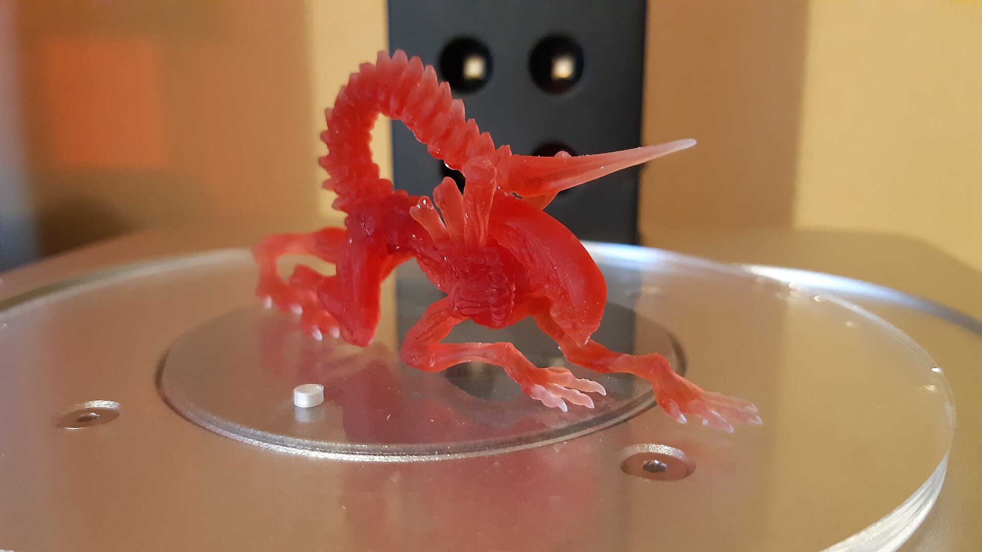 Un objet peut être imprimé en 3D en étant déplacé de bas en haut afin de créer de l'espace pour les polymères non solidifiés dans le fond du réservoir.